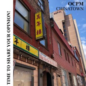 The Chinatown Working Group (CWG) has created the following template for community members to adapt for their own written submission to the Office de Consultation Publique de Montréal (OCPM) consultation regarding the City of Montréal’s proposal to: Confirm the City’s heritage designation of an expanded border of Montréal’s historic Chinatown. Reduce allowable height and density … Continue reading Our Written Submission Template for the OCPM Consultation on Montreal’s Chinatown